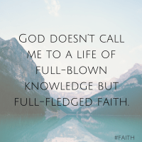 October 30, 2015 by George Lockhart God doesn’t call me to a life of full-blown knowledge but full-fledged faith.