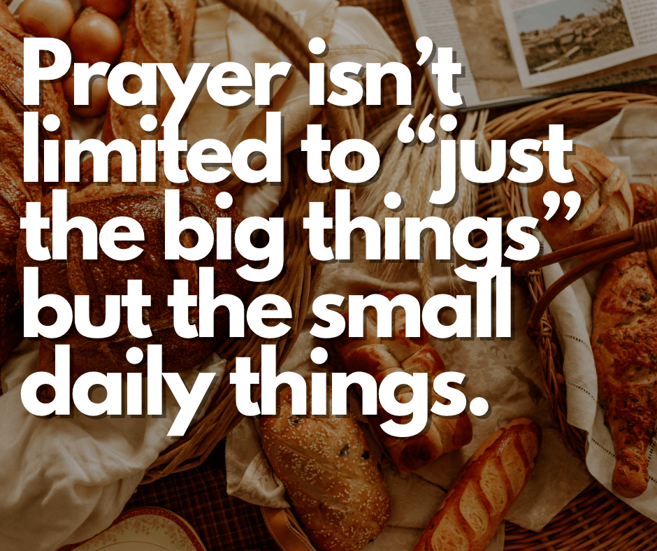 Thank you for giving me my daily bread that sustains me in this life and allows me such much more. Thank you for your generosity in giving me things I don’t ask for and forgive me for taking so many things for granted and feeling entitled to some things. Thank you for being a good Father and making sure I have what I need and for all the things I get to enjoy. My daily bread is certainly sweet. In Jesus name, I give thanks! Amen.