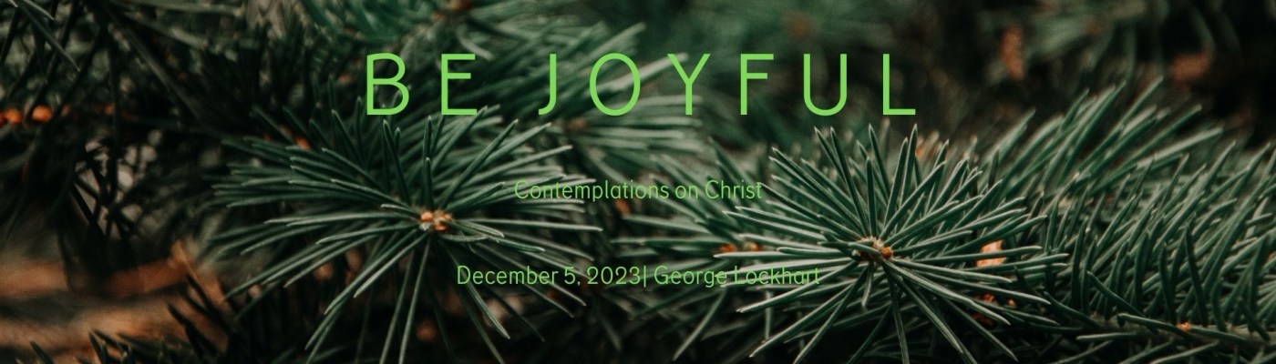 December 5, 2023 by George Lockhart Be Joyful Day 5 Share this: Click to share on X (Opens in new window) X Click to share on Facebook (Opens in new window) Facebook Like Loading... Related